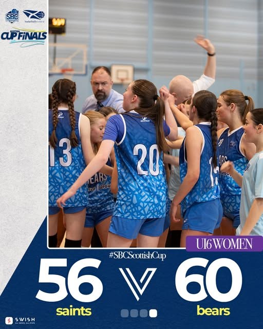 Our U16 women created history as they took home the Scottish Cup following a close 60-56 win over a talented St Mirren squad. Bears held out to return from the Regional Performance Centre in Dundee with the Cup for the first time for females, with our previous outing being our male U16 squad over 20 years ago.